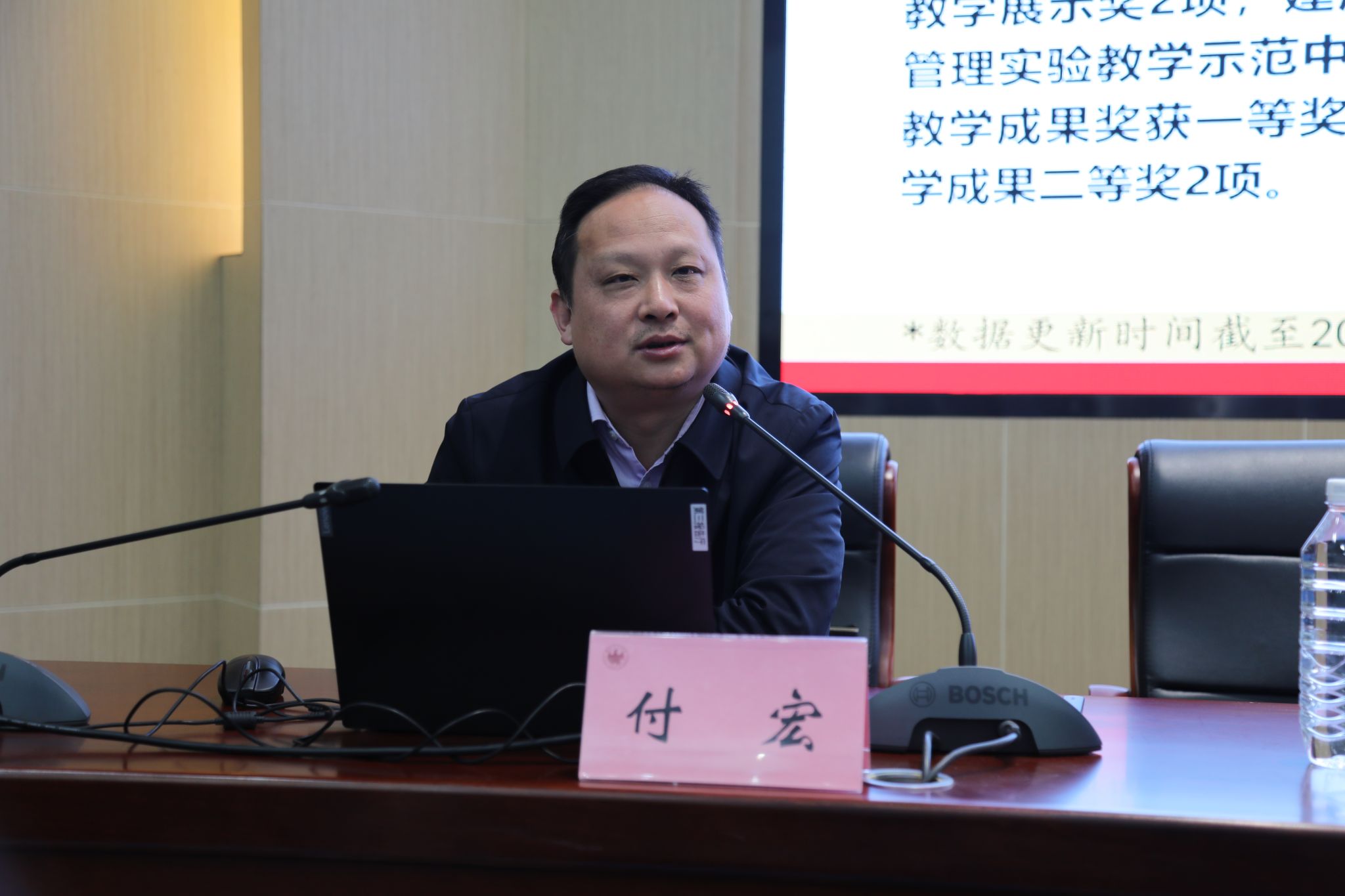 付宏以湖北经济学院试点工作实践为实例,详细分享湖北经济学院作为湖北省本科教育教学审核评估首家试点院校整个评建过程经验,并从建、评、改等方面对我校本科教育教学审核评估评建工作提出意见。李友玉从本科教育教学审核评估自评自建实务出发,指出我校上一轮审核评估整改工作的不足,深入分析和梳理新一轮审核评估新变化,并就审核评估自评自建重点工作、审核评估运行机制建立等问题提出建议。