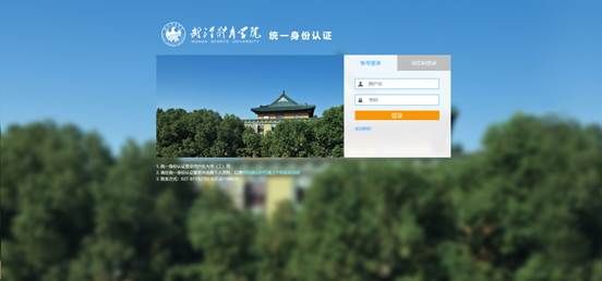 1.访问武汉体育学院学校官网https://www.whsu.edu.cn/,在“办事大厅”登录“统一门户”。统一身份认证的账号(学号)和密码登录。