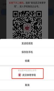 3.关注企业号:长按图中企业号二维码,点击“关注”,进入“武汉体育学院”。