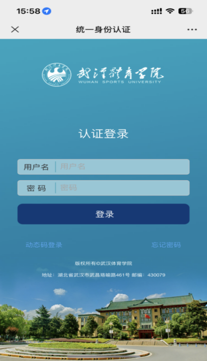 1.访问武汉体育学院学校官网https://www.whsu.edu.cn/在“办事大厅”登录“统一门户”。统一身份认证的账号(学号)和密码登录。