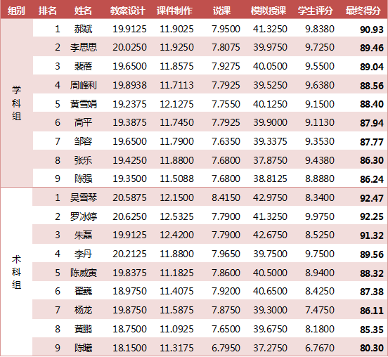 第七届青年教师基本功大赛,经过学院层层选拔、择优推荐,共有18位青年教师参加了为期三天的校级决赛,经过现场角逐和学校复审,现将成绩公示如下: