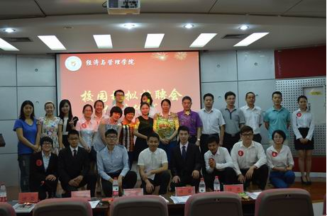 6月10日晚上7:00,我校经济管理学院在东教学楼三楼第一报告厅举行了第二届校园模拟招聘会。参加此次招聘会的评审企业有武汉国风尚品贸易有限公司、武汉灵坤教育发展有限公司、武汉圣约科技有限公司和湖北省奥林匹克体育中心的各位企业代表。