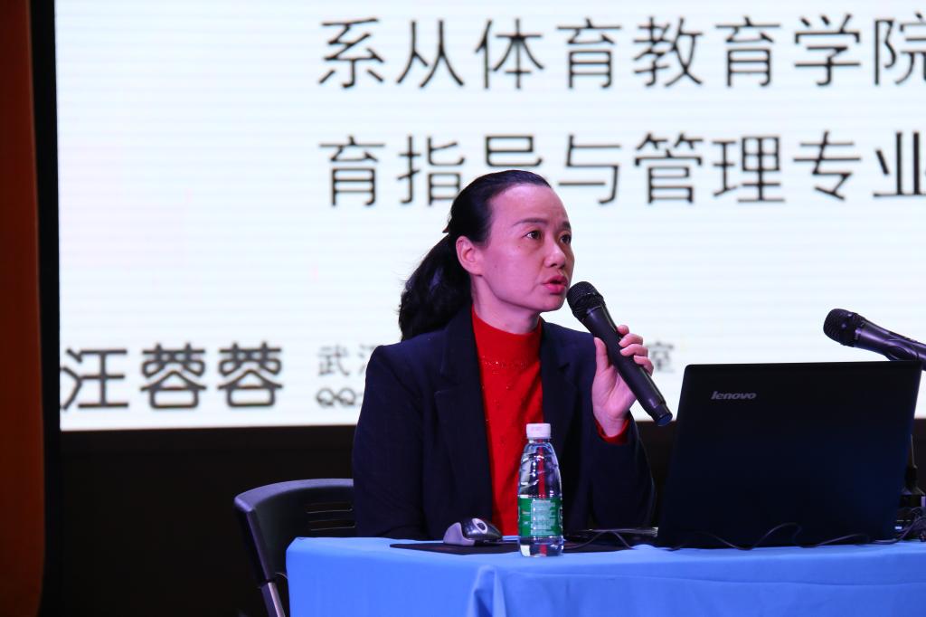 我校经济与管理学院汪蓉蓉副教授就“说专业”作了题为《省一流专业建设点:休闲体育专业介绍》的报告,从专业定位与历史沿革、专业建设理念与优势特色、专业综合改革与教学质量保障以及金课建设未来发展四个维度逐一做了阐释。她结合校情学情与具体案例,详细介绍休闲体育专业的特色、培养目标与课程体系建设情况,分享了休闲体育专业的校企联合培养模式、校内外双师型教学团队、重视实践实训等相关经验,富有远见地指出休闲体育专业在当下“金课”建设及未来建设过程中的可行性改进策略。