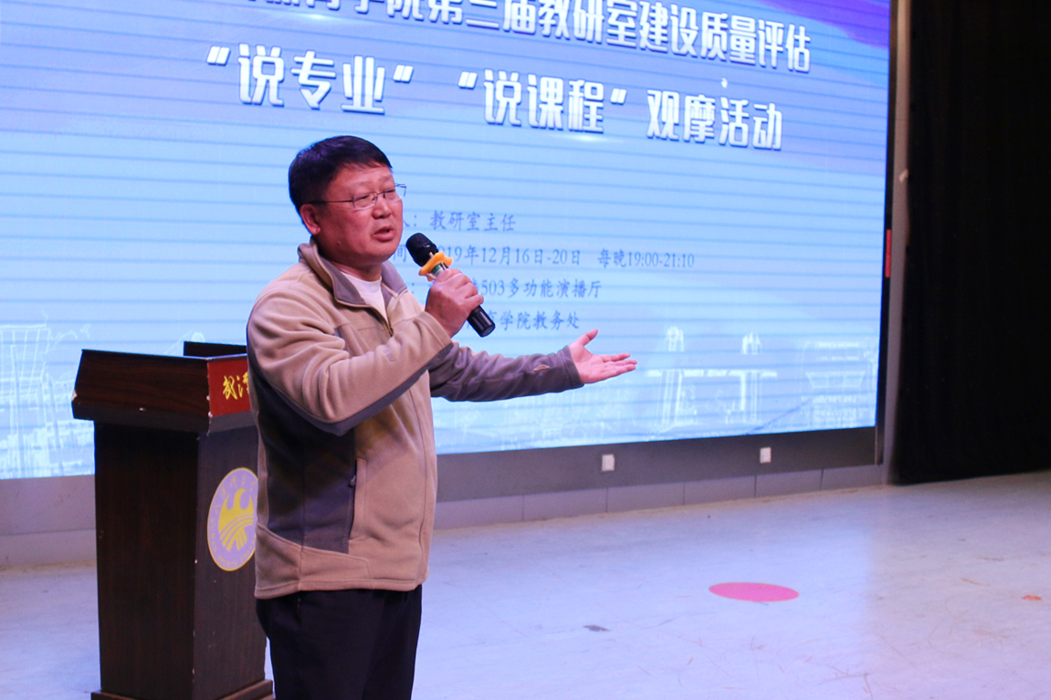 “说专业”“说课程”观摩活动由全校教研室主任担任主讲,目的在于通过此观摩活动进一步明确人才培养目标,把OBE理念落实到专业建设和课程建设中,促进在人才培养模式、课程内容和课程考核等方面的持续改进。