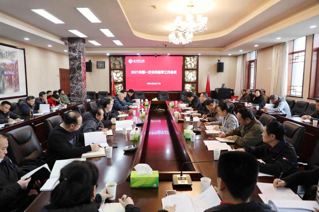 (通讯员 汪凌云)3月19日下午,我校于行政楼411报告厅召开2021年第一次本科教学工作会议,校长吕万刚,图书馆、竞赛与场馆中心、网络中心负责人,各学院院长、主管教学副院长,学校教学督导、教务处有关人员参加了本次会议。会议由副校长王志强主持。