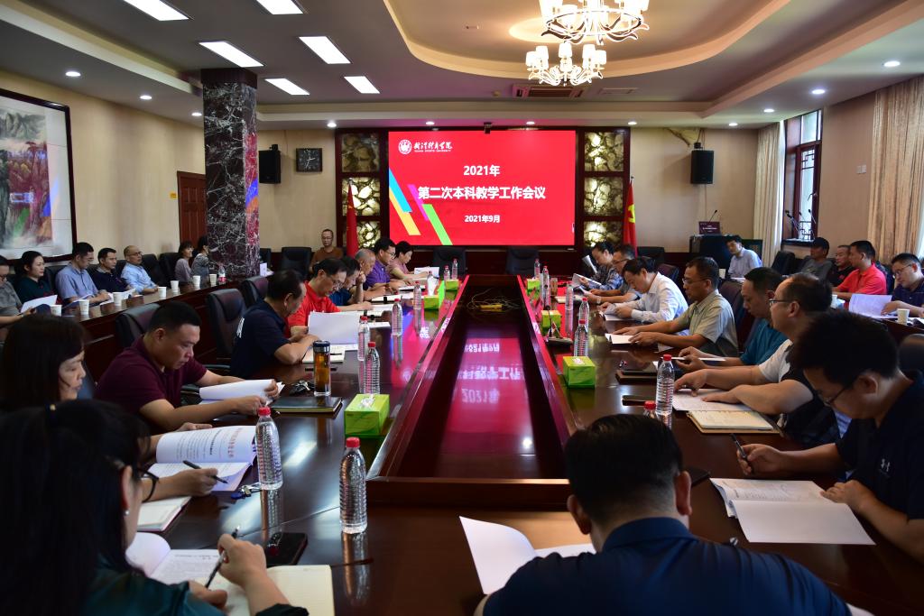 (通讯员 汪凌云)9月29日下午,我校于行政楼411会议室召开2021年第二次本科教学工作会议,校党委书记徐雁冰、副书记漆昌柱,竞赛与场馆中心、图书馆负责人,各二级学院院长、主管教学副院长,学校教学督导、教务处有关人员参加了本次会议。会议由副校长王志强主持。