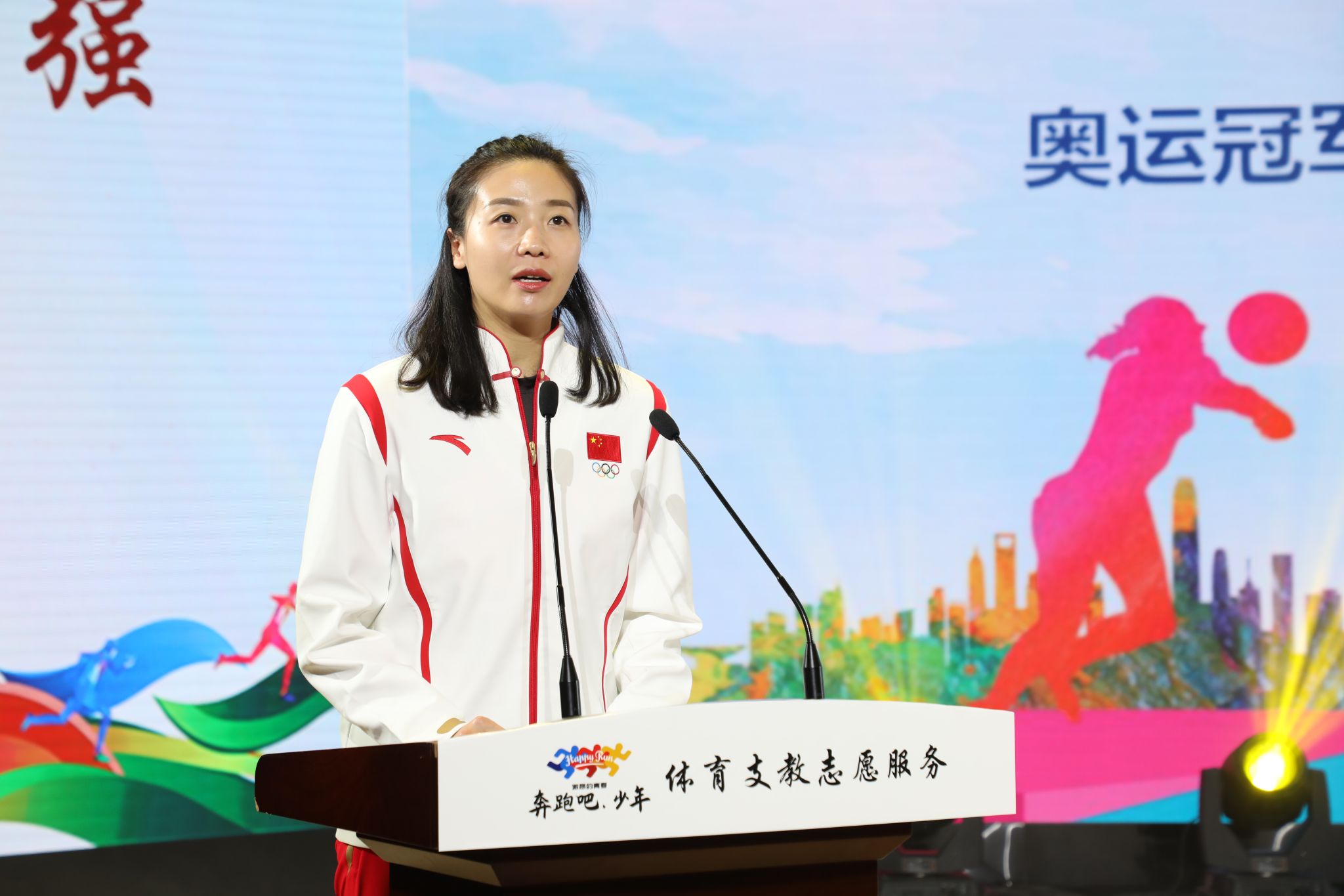 奥运冠军、前中国女排队长魏秋月上台,讲述了中国女排重回世界之巅的艰辛历程,以及她参加三届奥运会的传奇经历,她号召更多奥运冠军和体育明星身体力行投身青少年体育发展。
